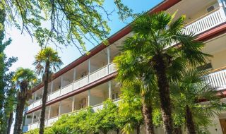 Находится в первой береговой линии уникального пляжа, длиной почти в 400 метров, который подарит незабываемые впечатления даже самым требовательным отдыхающим. Наш санаторий занимает территорию более чем 25 Га, состоящую из 7 корпусов, высотой 3-4 этажа, с 239 номерами, находящихся в пределах 20-150 метров от моря. Теперь каждый номер имеет потрясающий вид на Черное море и горы.